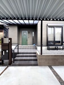 カーポートから濡れずに家に入れるようになってます。便利ですね。